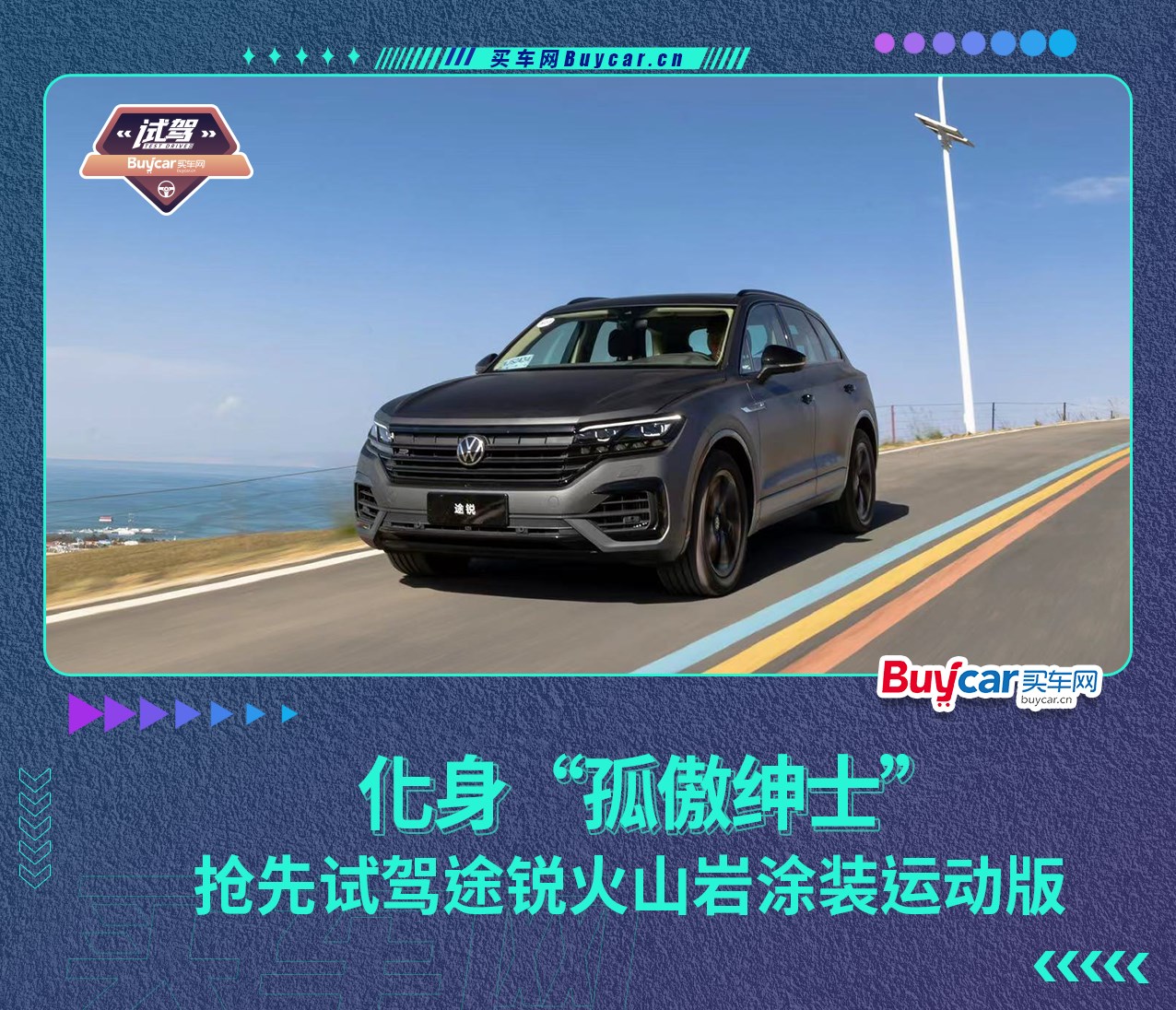 途銳作為大眾旗下的旗艦豪華SUV,自2002年問(wèn)世以來(lái),歷經(jīng)三代車型,一直是許多人心中的經(jīng)典“Dream Car”。而在前不久的成都車展上,大眾官方正式上市了途銳火山巖涂裝運(yùn)動(dòng)版,新車限量1001輛,共推出兩款車型,售價(jià)分別為69.38萬(wàn)元和79.38萬(wàn)元。話不多說(shuō),接下來(lái)就跟隨買車網(wǎng)Buycar一起在美麗的青海搶先體驗(yàn)大眾途銳火山巖涂裝運(yùn)動(dòng)版所散發(fā)的魅力吧!