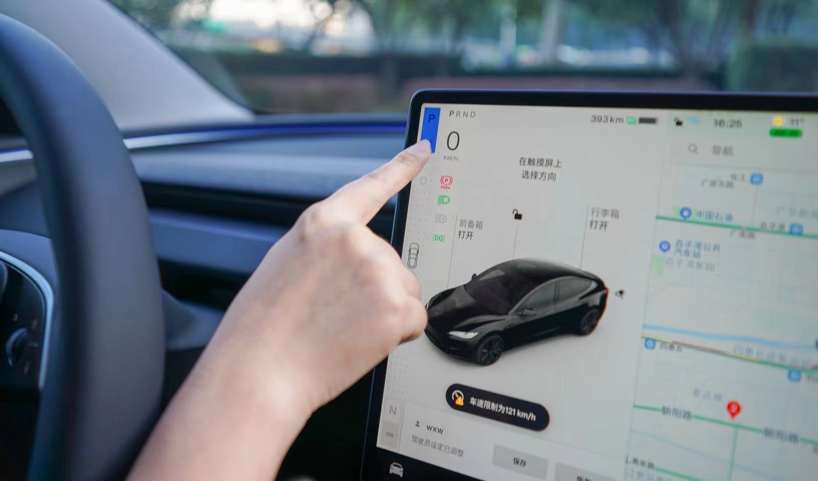 同時值得注意的則是換擋桿的取消,現在則需要踩下剎車通過中控大屏的滑塊來進行,不過操作也是十分簡單,上滑前進,下滑倒車,點按駐車,而特斯拉還貼心的在車頂布置了按鍵換擋,以備不時之需。雖然這看起來比較“浮夸”,但在實際操作中,它確實能夠讓駕駛者在手不離開方向盤的同時實現各種操作,所以就是仁者見仁,智者見智。