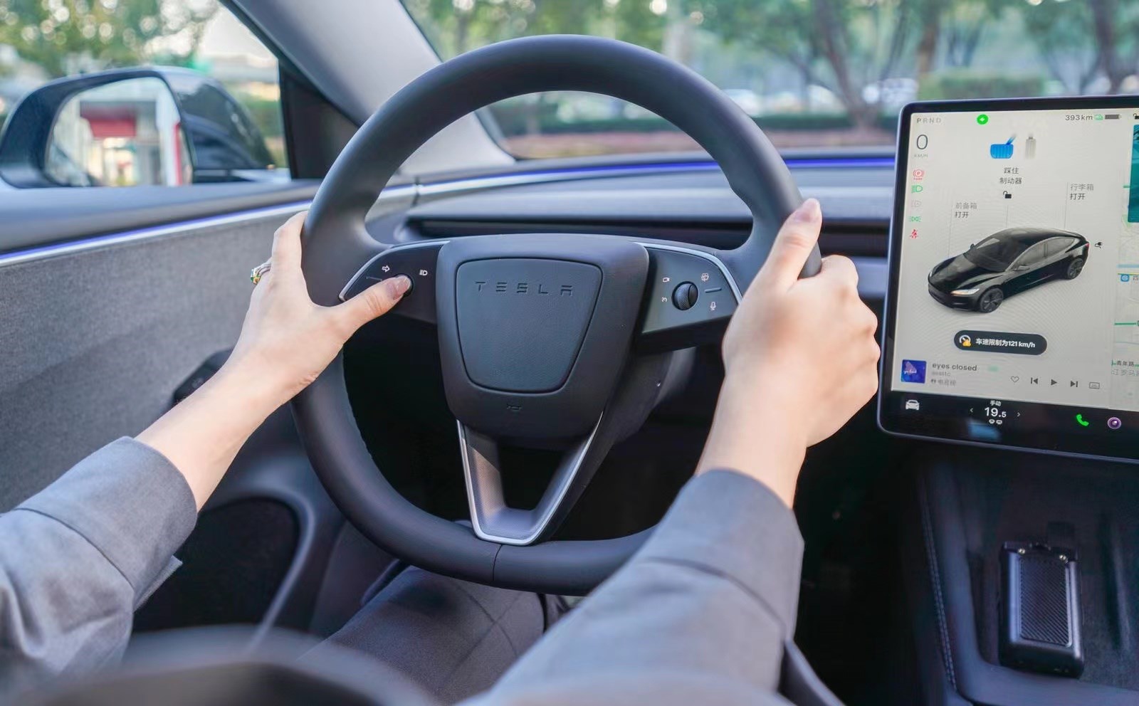 進入車內,升級同樣非常明顯,整個車內營造出了素雅、整潔的時尚科技感,并且在方向盤區(qū)域是特斯拉Model 3煥新版最大的變化,由此可以看到新車取消了所有的撥桿,包括雨刷、轉向燈、語音、攝像頭、輔助駕駛等功能均可通過方向盤上的按鍵和滾輪實現操作。