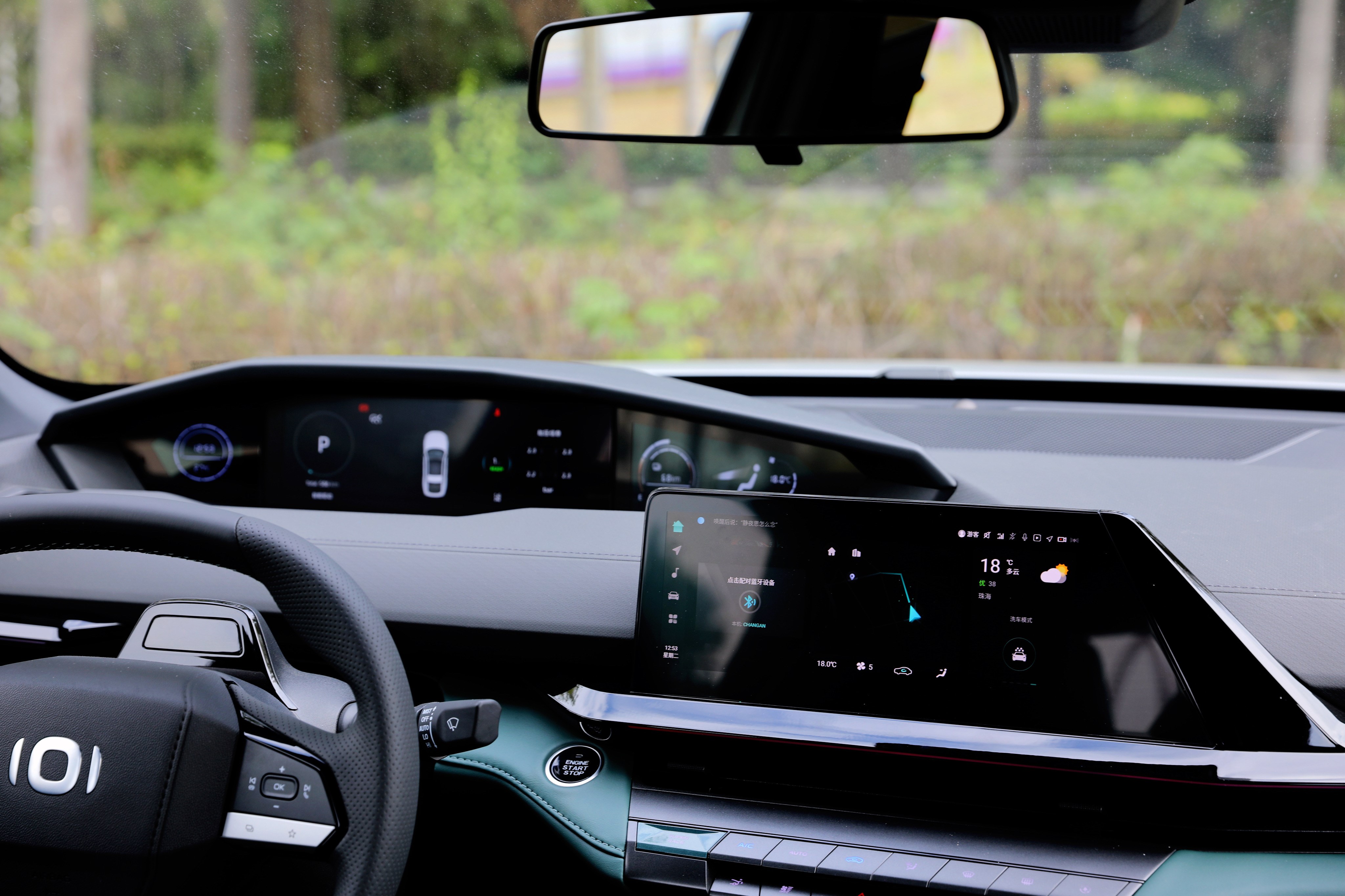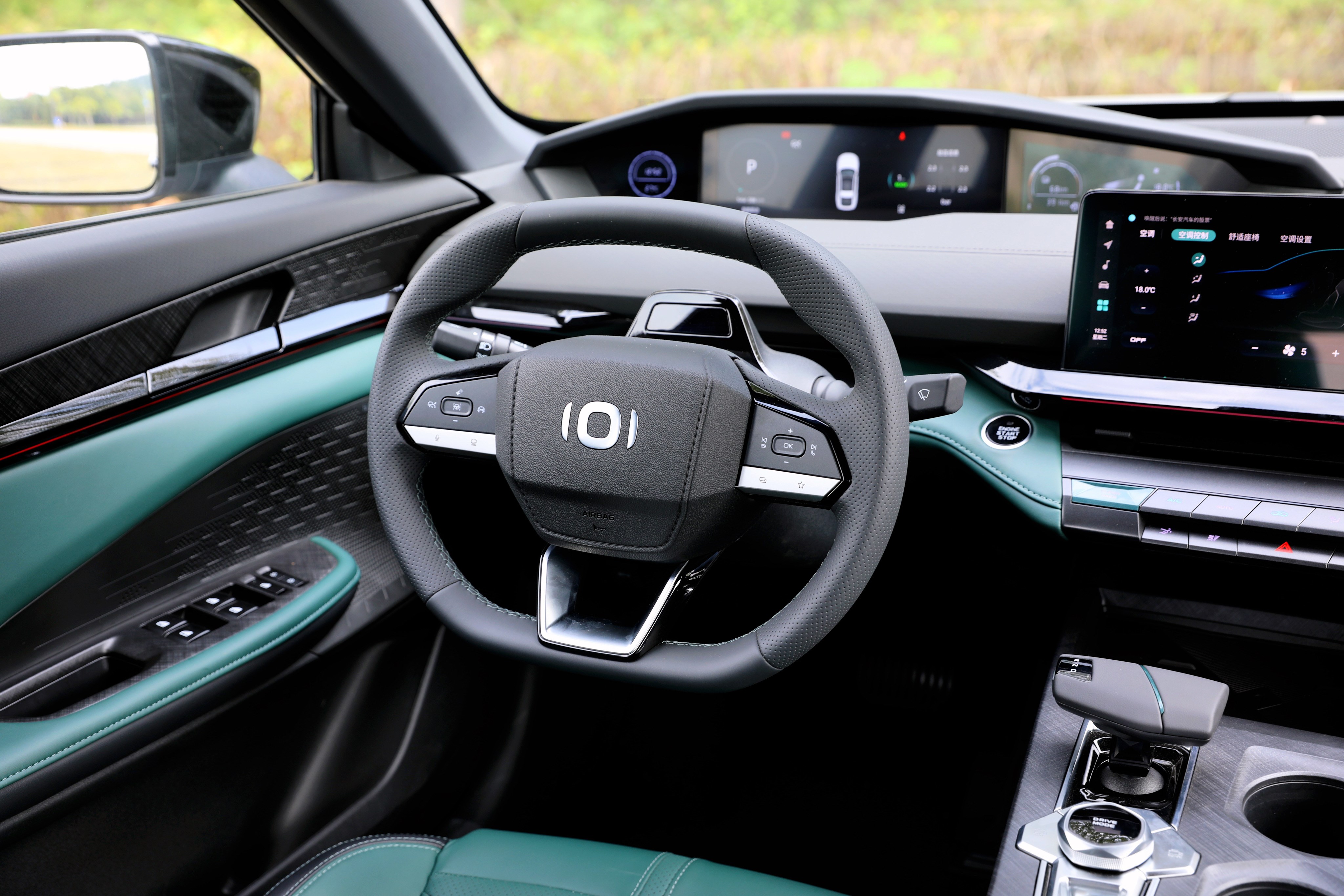 進(jìn)入車內(nèi),長安啟源A06座艙風(fēng)格很獨(dú)特,富有層次感的造型讓你第一眼會(huì)感覺很復(fù)雜,但是仔細(xì)品味一番后,它特殊的風(fēng)格可以說是別有一番風(fēng)味。啟源A06提供流沙白和林蹤綠兩種面料配色,個(gè)人更喜歡林蹤綠的配色方案,更能體現(xiàn)出動(dòng)感、時(shí)尚的一面。