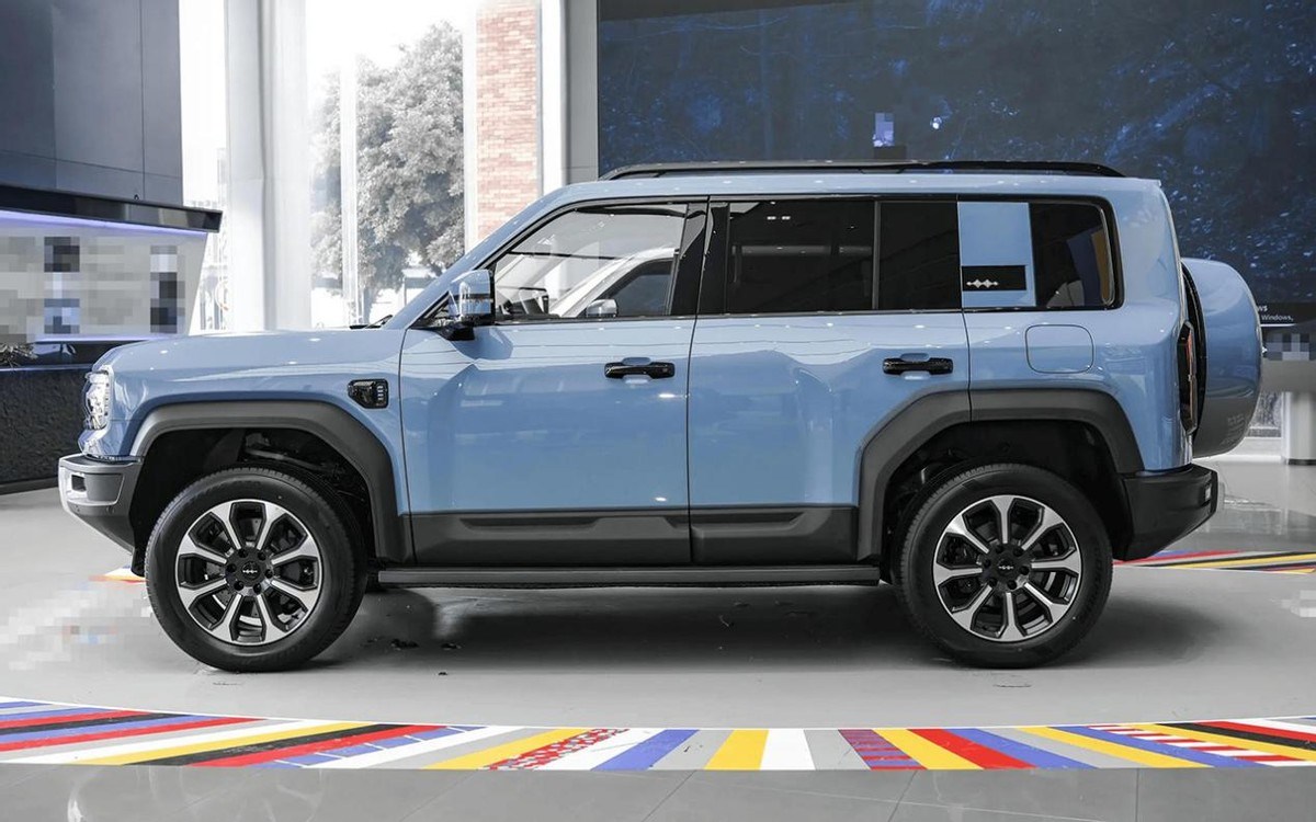側(cè)面很方正,后車窗還配有小的爬升梯,看著很是硬派。另外,新車還是一款采用非承載式車身的SUV,這意味著整車的越野能力有一個(gè)基本的保障。